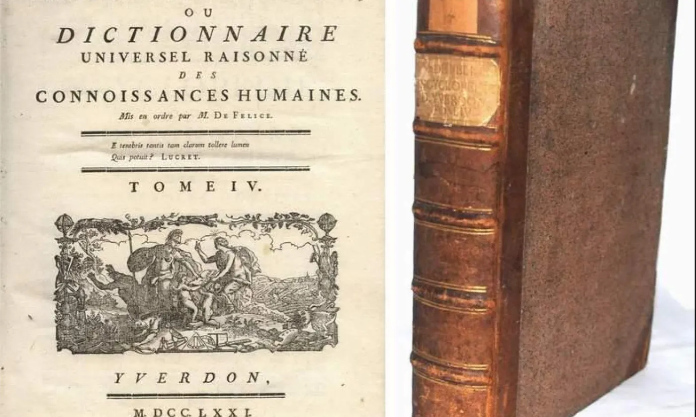 «En dix ans, Barthélemy De Felice va sortir les 58 volumes de l’Encyclopédie d’Yverdon, un véritable tour de force, car il faut reprendre et composer 75'000 articles en un temps record», explique Guillaume Poisson, collaborateur scientifique à l’Institut Benjamin Constant de l’Université de Lausanne. Fuyant l’Italie pour des raisons politiques et personnelles, dans les années 1750, le moine Fortunato Bartolomeo De Felice s’est réfugié à Berne. «A cette époque, le milieu patricien bernois est très éclairé et accueille volontiers des intellectuels, c’est une république extrêmement florissante au niveau des arts, des lettres et des sciences. De Felice se convertit au protestantisme par conviction et se fait rapidement remarquer par l’élite qui va le charger de créer une société typographique», explique l’historien.